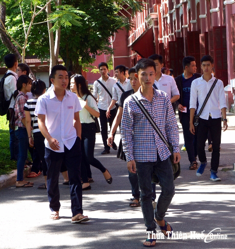 Môn thi đầu tiên là môn thi bắt buộc, vừa xét tốt nghiệp và đại học nên không chỉ sĩ tử mà cả người nhà TS cũng lo lắng. Anh Tôn Thất Viễn Liêm, trú tại Phú Mỹ (Phú Vang) tâm sự: “Tui làm nghề xây dựng, mấy ngày ni sắp xếp nghỉ để đưa con đi thi. Con lo một chơ ba mẹ lo tới mười. Hy vọng cho con vượt qua từng môn”.