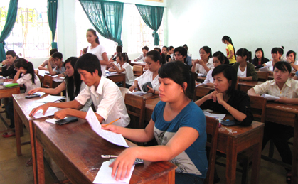 Thí sinh tại điểm thi Trường THPT Cao Thắng trong kỳ thi tuyển sinh đại học, cao đẳng 2012 (Ảnh: Ngọc Hà)