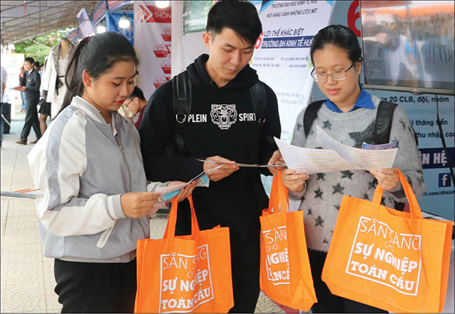 Thí sinh xem thông tin tuyển sinh năm 2019 tại một trường ĐH thuộc ĐH Huế. Ảnh: Hữu Phúc