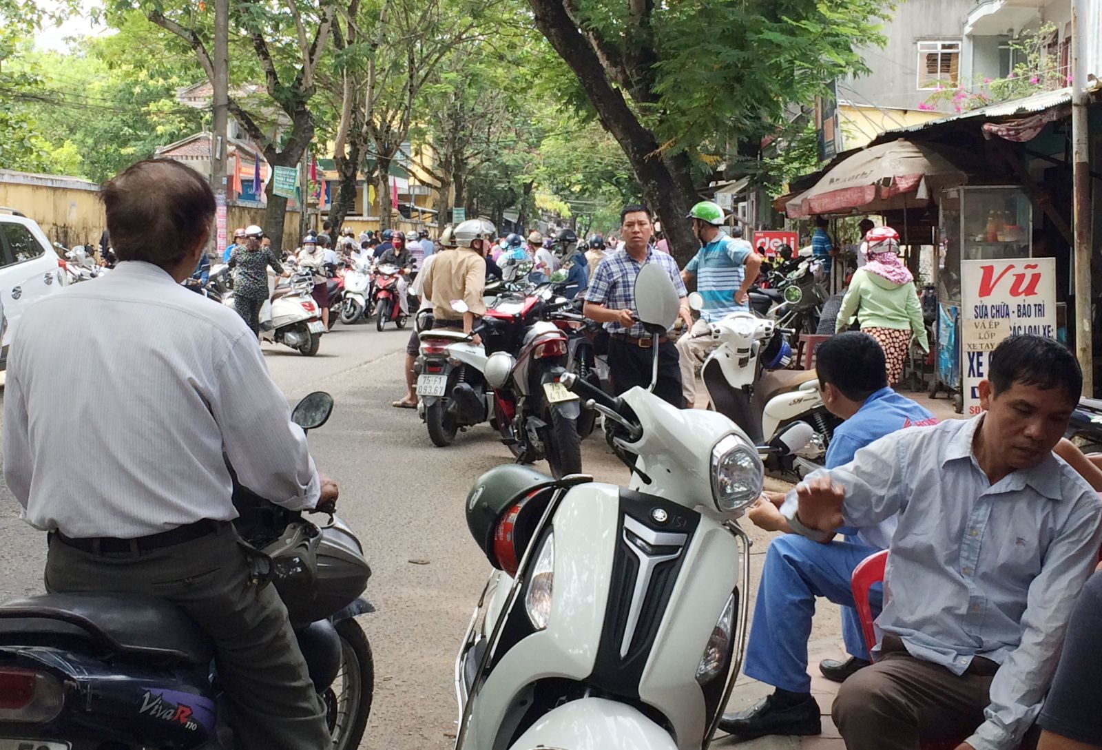 Các bậc phụ huynh chờ con thi ra trong tâm trạng vừa lo lắng, vừa hy vọng.