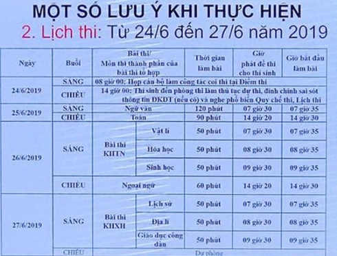 Trước đó 1 ngày, các thí sinh sẽ được nghe quy chế và sửa đổi bổ sung các giấy tờ bị nhầm lẫn hoặc sai sót. Sau khi thi THPT quốc gia xong thì dự kiến thời gian công bố điểm thi sẽ là trước ngày 11/7.