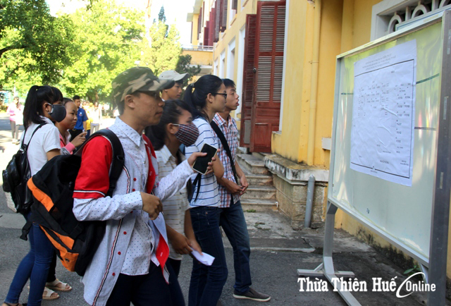 Theo thống kê của Hội đồng thi do cụm thi ĐH Huế chủ trì, có 10.057/10.301 TS đến làm thủ tục dự thi (vắng 244 em), chiếm tỷ lệ 97,63%. Trong đó, điểm trường có lượng TS đến làm thủ tục cao nhất là Trường ĐH Sư phạm B với 915 TS (vắng 5 em), chiếm tỷ lệ 99,46%; điểm thi có lượng TS đến làm thủ tục thấp nhất là Trường ĐH Nông lâm B với 746 TS (vắng 54 em), chiếm tỷ lệ 93,25%.