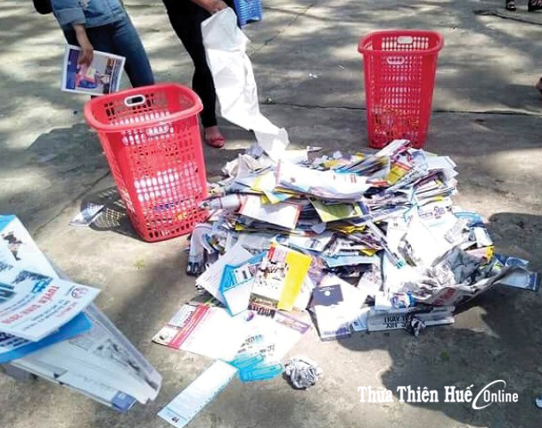 Tham dự ngày hội tư vấn tuyển sinh năm 2018 ở Huế và các tỉnh lân cận, người viết chứng kiến các đơn vị giáo dục phát ra hàng ngàn tờ rơi, song có thí sinh chỉ đọc lướt qua, thậm chí nhận tờ rơi rồi vứt bỏ. Kết thúc sự kiện, ban tổ chức phải đi nhặt lại số “rác” ấy. Trong những đợt mưa, tờ rơi bị vứt bỏ trở nên nhàu nát, gây nhếch nhác không gian nơi diễn ra sự kiện và các tuyến đường gần đó.