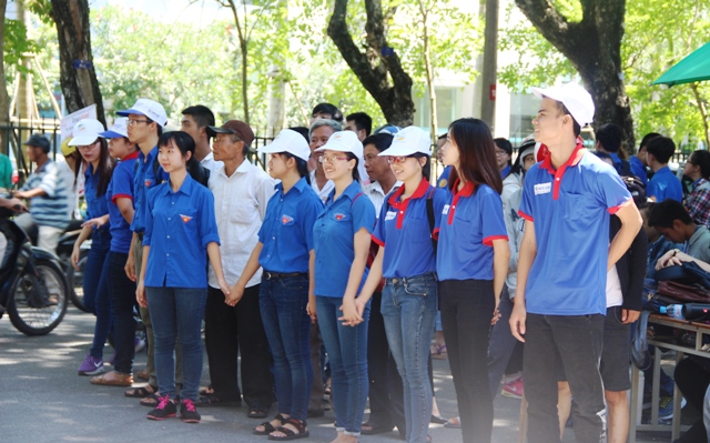 Ngay sau khi kết thúc môn thi đầu tiên trong sáng nay, tình nguyện viên của các trường đại học, cao đẳng tập trung trước các điểm thi để phân luồng giao thông, tiếp nước miễn phí, cung cấp thông tin tuyển sinh, hướng dẫn thí sinh vào phòng thi, đưa đón thí sinh và người nhà thí sinh... Ngoài ra, các tổ chức từ thiện, hội sinh viên của các trường đại học, cao đẳng tổ chức phát phiếu cơm miễn phí…
