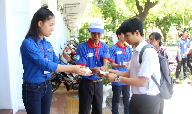 Phát phiếu ăn miễn phí tại điểm thi Trường đại học Sư phạm