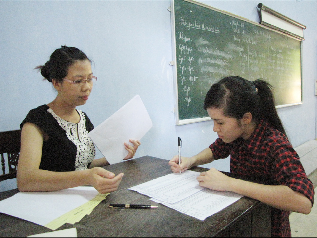 Thí sinh nộp bài tại điểm thi Trường đại học Sư phạm Huế trong kỳ thi tuyển sinh ĐH-CĐ 2014