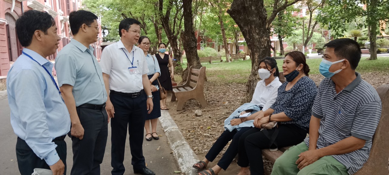 HNN.VN - Chiều 8/6, UVTV Tỉnh ủy, Phó Chủ tịch UBND tỉnh Nguyễn Thanh Bình đã đi kiểm tra công tác chuẩn bị kỳ thi tuyển sinh lớp 10 THPT năm học 2022-2023 tại điểm thi trường THPT Hai Bà Trưng và trường THPT chuyên Quốc Học. Cùng đi có lãnh đạo Sở Giáo dục và Đào tạo.