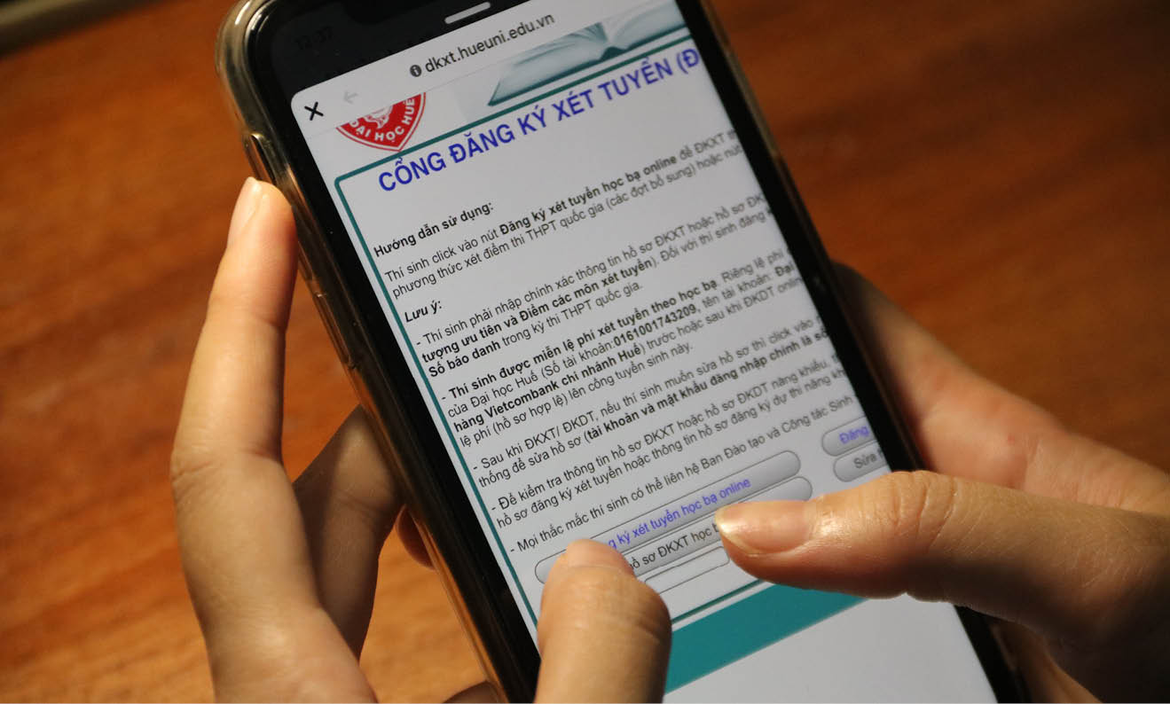 TS. Nguyễn Công Hào, Trưởng ban Đào tạo và Công tác sinh viên ĐH Huế cho biết, cách đăng ký trực tuyến đơn giản và có hướng dẫn cụ thể, thí sinh chỉ cần nhập dữ liệu thông tin cá nhân theo yêu cầu mẫu có sẵn trong thời gian khá nhanh. So với năm 2019, hệ thống được nâng cấp với đường truyền đảm bảo, kể cả khi hàng ngàn thí sinh đăng ký cùng thời điểm. Ngoài ra, thí sinh không phải ràng buộc yêu cầu nộp học phí sớm mà chỉ cần nộp học bạ gốc sau khi trúng tuyển để ĐH Huế kiểm tra, thẩm định.
