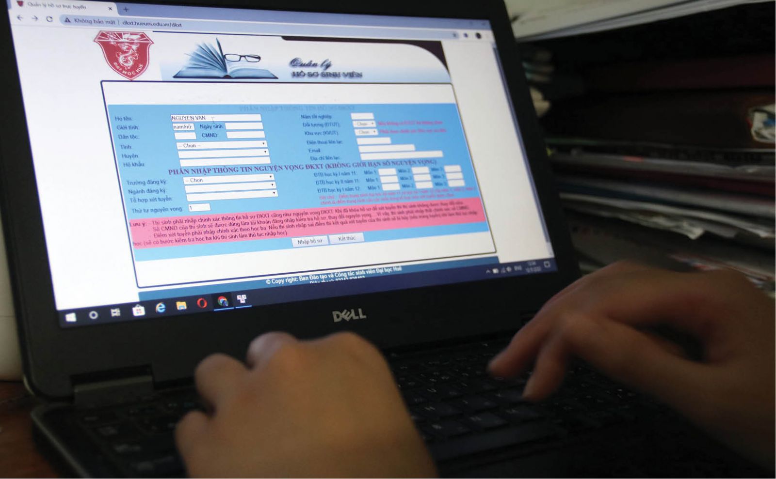 Từ khoảng giữa tháng 5/2020, thí sinh đăng ký xét tuyển dựa vào kết quả học tập cấp trung học phổ thông (học bạ) và đăng ký dự thi năng khiếu có thể làm hồ sơ thủ tục với hình thức trực tuyến qua hệ thống cổng đăng ký của ĐH Huế. So với hình thức nộp trực tiếp, hình thức nộp online tạo ra sự nhanh, gọn, thuận lợi cho thí sinh, nhất là những thí sinh ngoại tỉnh, ở xa.