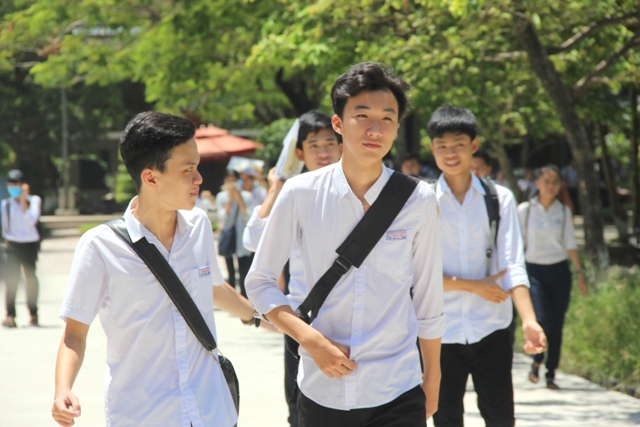 Thí sinh ở điểm Trường THPT Gia Hội ra về sau giờ thi