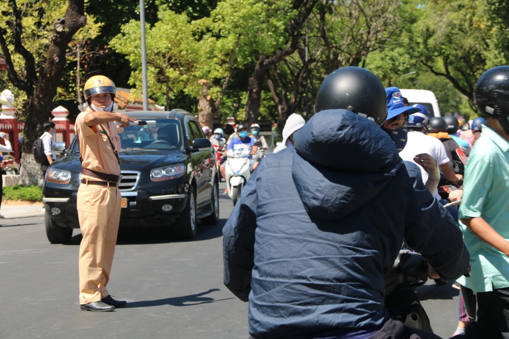 Lực lượng công an giao thông điều tiết, hạn chế tắc đường sau giờ thi