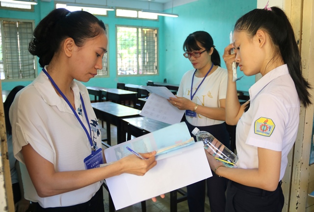 Ở buổi thi này, cán bộ coi thi kiểm tra rất kỹ Atlat địa lý khi thí sinh mang vào phòng thi