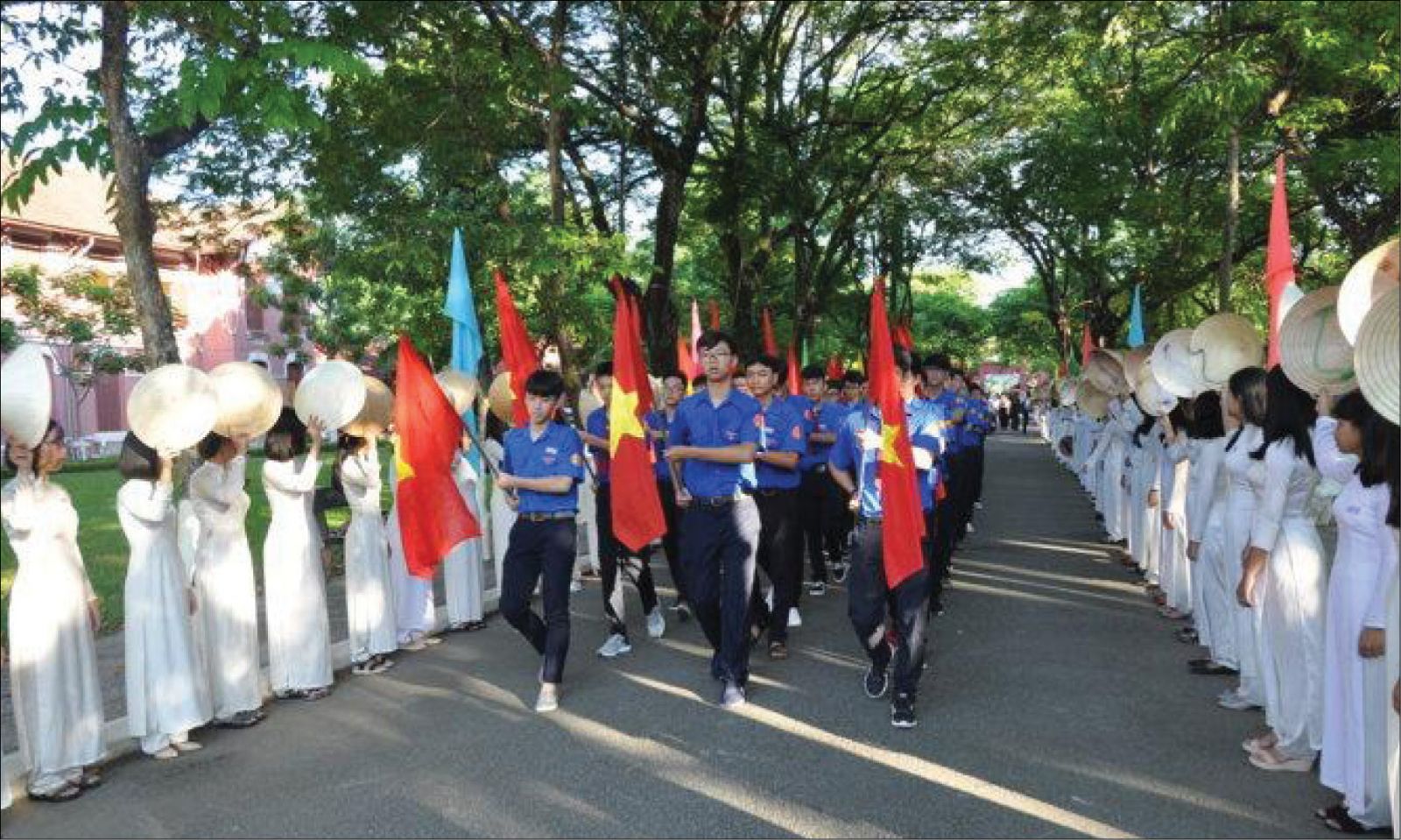 Học sinh Trường THPT Hai Bà Trưng trong ngày khai giảng