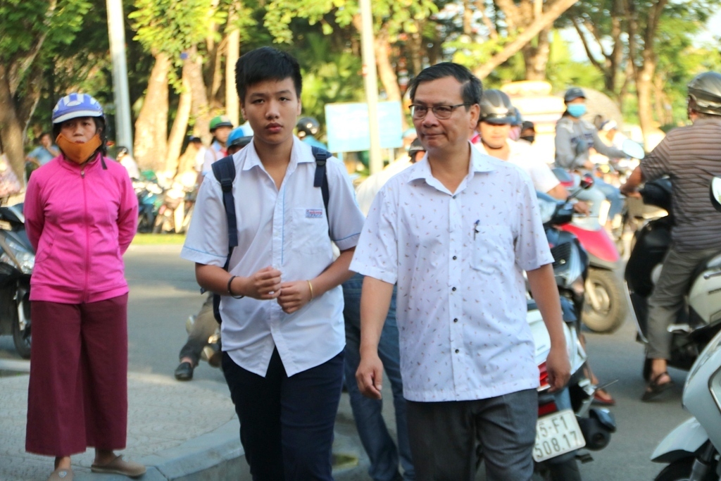 Trong khi thí sinh làm bài, bên ngoài cổng trường, không khí cũng nóng không kém. Nhiều phụ huynh đứng ngồi không yên chờ đợi con suốt 120 phút. Chị Lê Thị Trà Mi, có con học Trường THCS Nguyễn Chí Diểu, cho hay: "Suốt 9 năm liền, cháu đều đạt học sinh giỏi, nhưng đến gần ngày thi cháu vẫn thấy lo. Đây là kỳ thi đầu tiên của con nên cả gia đình đều ngồi ngoài phòng thi để đợi. Con lo một, cha mẹ lo mười, chỉ mong con thi tốt”.