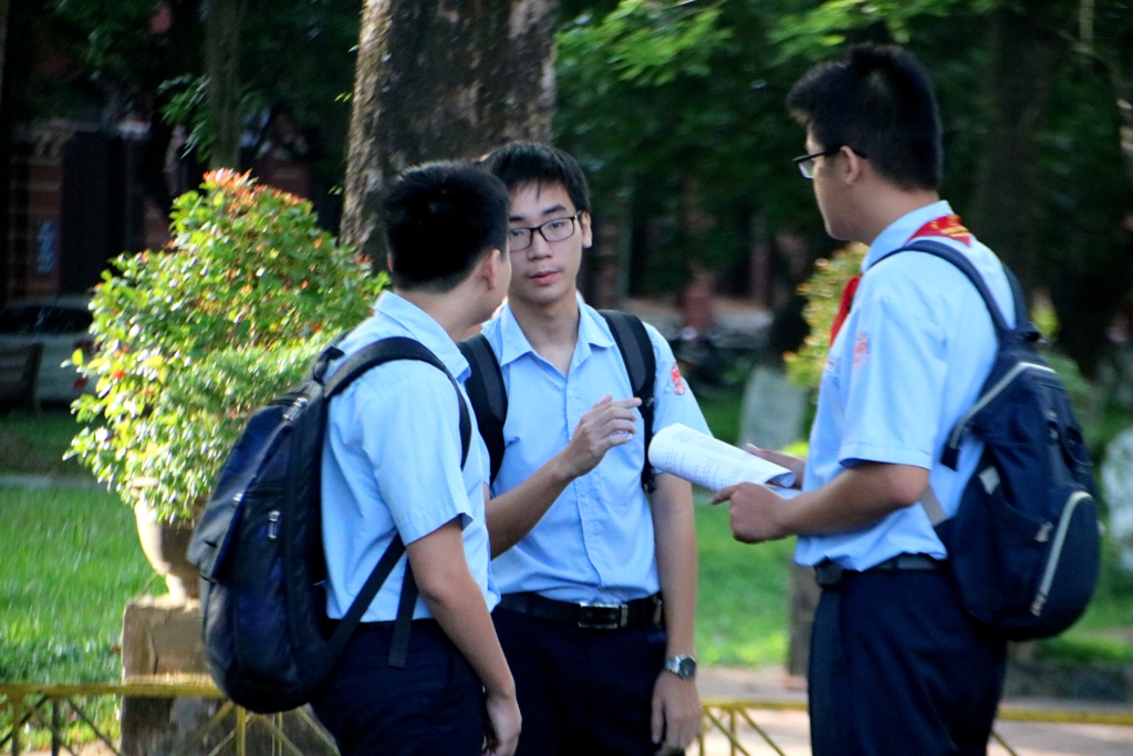 Học sinh trao đổi kiến thức trước khi vào phòng thi