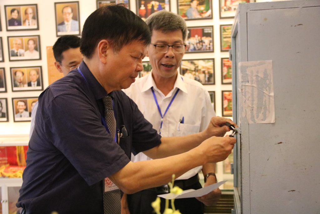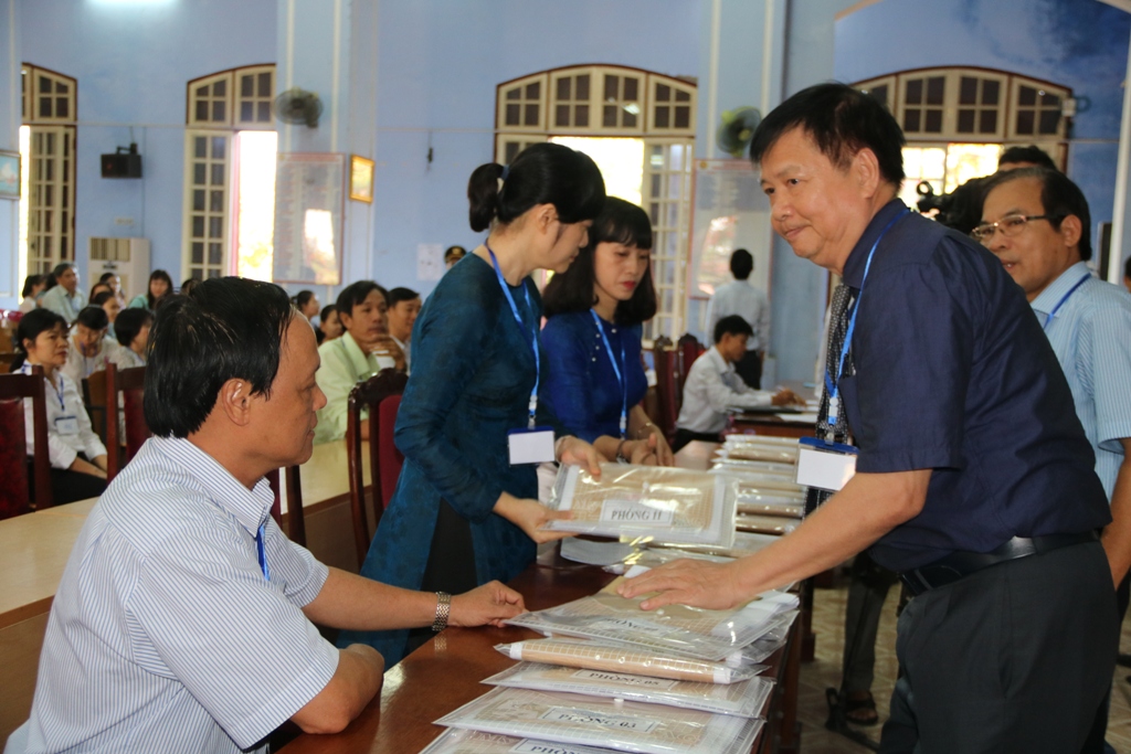 Cán bộ coi thi nhận hồ sơ về phòng thi.
