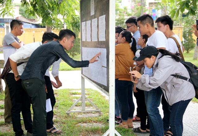 Kiểm tra thông tin số báo danh, phòng thi tại bảng thông báo ở điểm trường thi
