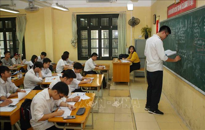 Từ đầu năm học, Ban Giám hiệu cùng các thầy cô trong tổ bộ môn trường THPT Đoàn Kết - Hai Bà Trưng đã đưa ra phương án ôn tập, hệ thống kiến thức cũng như thi thử cho các em học sinh khối 12, để các em làm quen và có tâm thế vững vàng cho kỳ thi THPT quốc gia 2019. Ảnh: Thanh Tùng/TTXVN