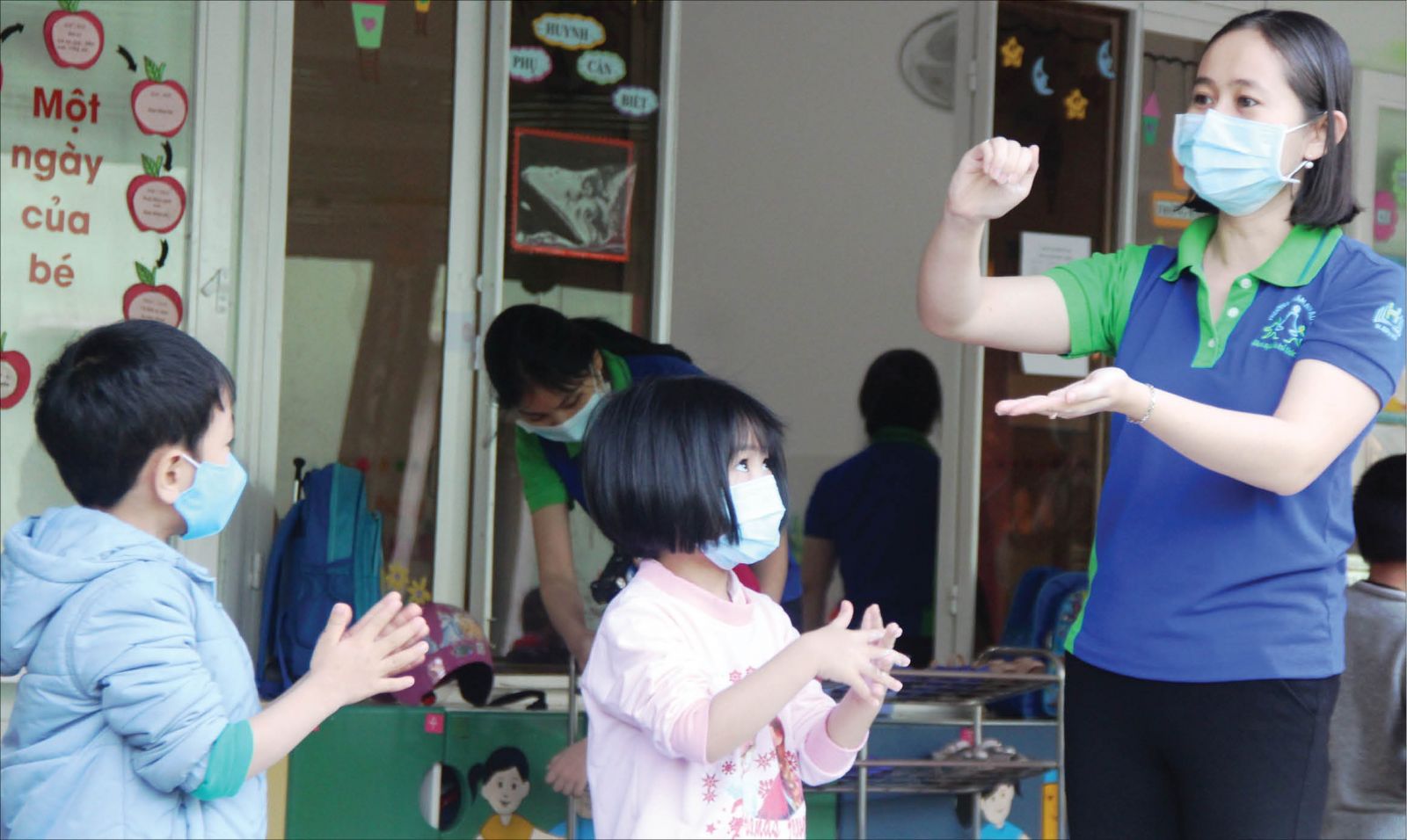 Hướng dẫn các bé ở Trường mầm non Âu Lạc vệ sinh cá nhân