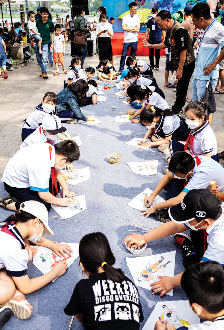 Lần đầu tiên sau gần 2 năm bị ảnh hưởng bởi COVID-19, lễ hội Diều Huế 2022 được tổ chức từ 16 đến 23/4 tại Công viên Tứ Tượng, cạnh bờ sông Hương, từ những ngày đầu đã thu hút rất đông du khách, nhất là các bạn nhỏ hào hứng tham gia. Ở đó, các em được vẽ, được tô màu rồi tự buộc dây, lấy đà và chạy cho diều cất cánh bay xa. Những tiếng cười, gương mặt rạng rỡ cũng nhờ thế mà trong trẻo, lung linh hơn trong nắng sớm.