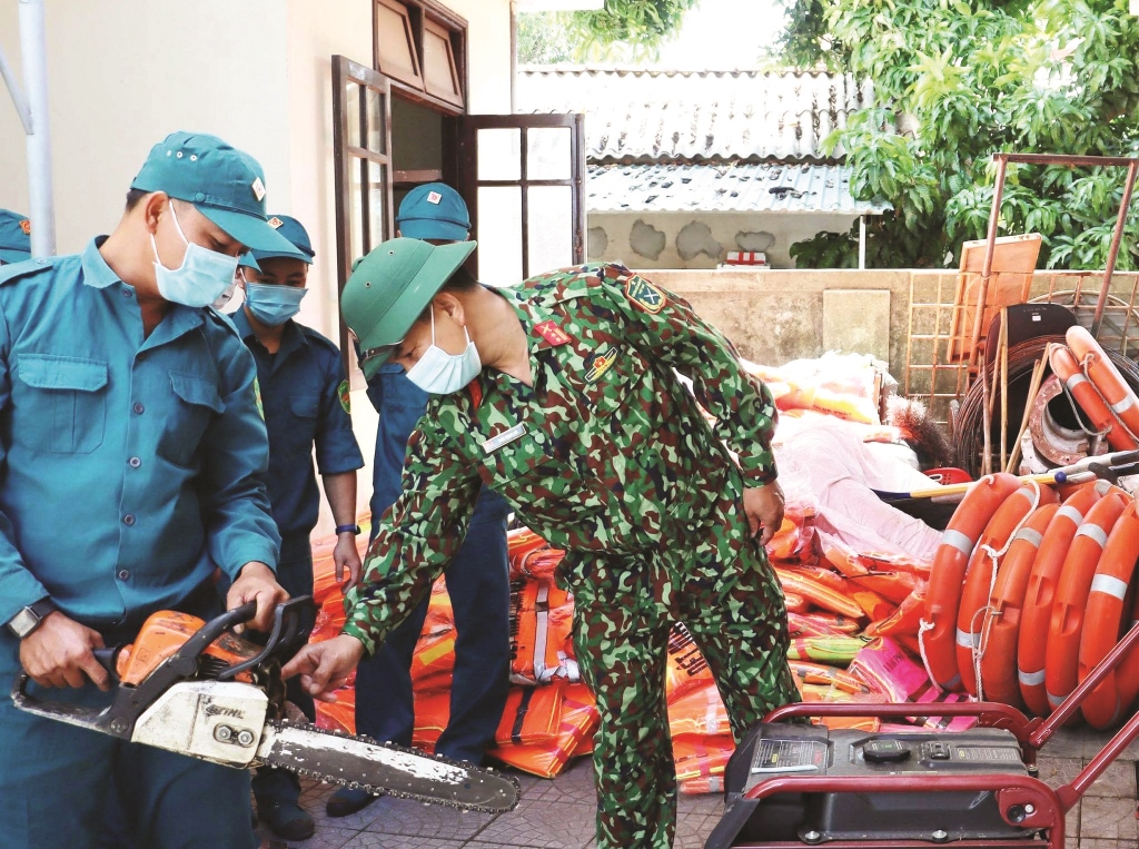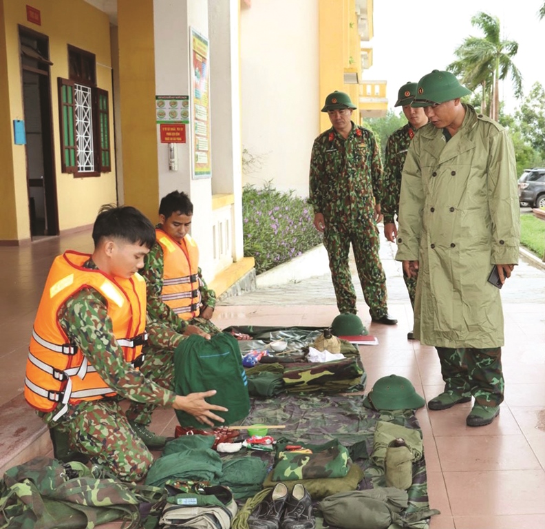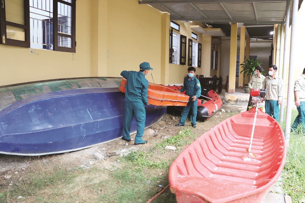Để sẵn sàng các tình huống ứng phó, cứu hộ, cứu nạn, giúp dân… khi mưa bão xảy ra, Ban chỉ huy Quân sự các địa phương trực thuộc Bộ Chỉ huy Quân sự tỉnh đã chủ động kiểm tra phương tiện, ghe, xuồng, ca-nô, phao cứu sinh… và không ngừng tuần tra tuyên truyền, nhắc nhở, giúp người dân neo đậu tàu thuyền, gia cố nhà cửa trước mùa mưa lũ.