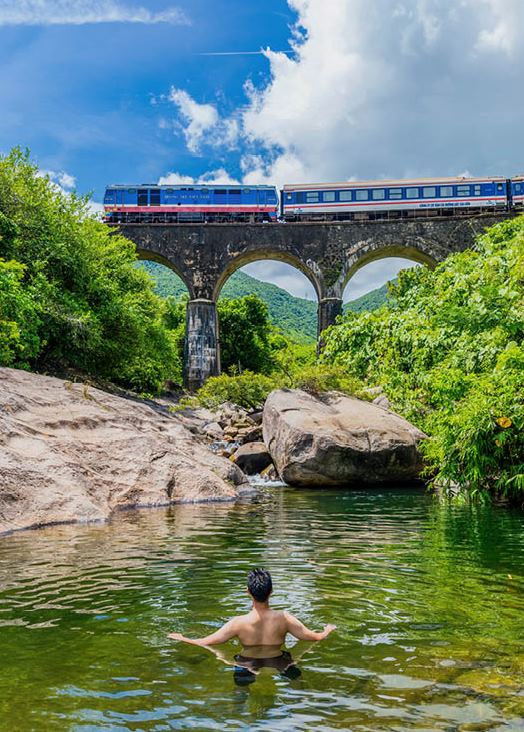 Du khách ngâm mình ở một suối nhỏ gần Ga Hải Vân