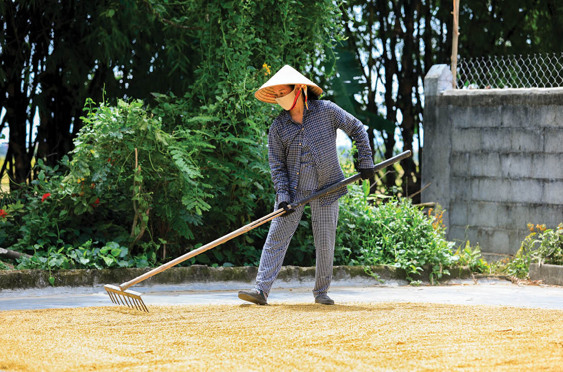 Tranh thủ nắng ráo, bà con phơi khô trước khi bảo quản, đóng bao