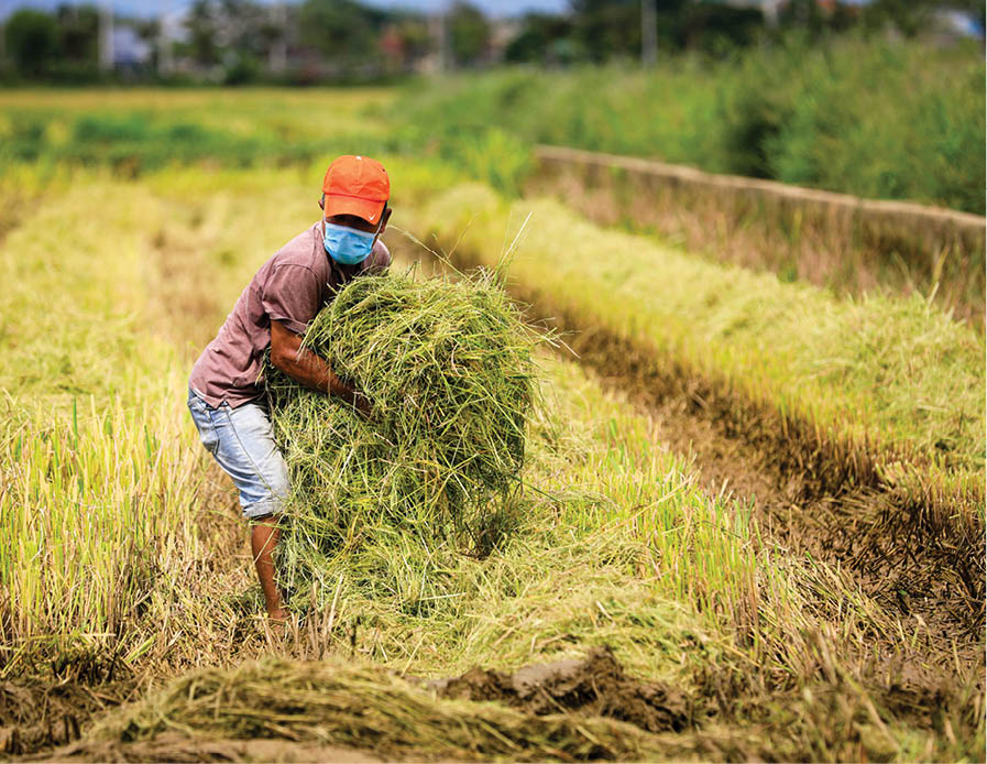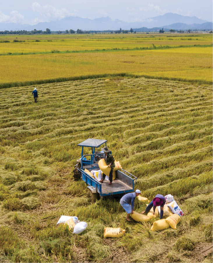 Vụ hè thu năm nay, nông dân càng khó khăn hơn khi thời tiết không thuận lợi, giữa vụ thì nắng hạn, lúc thu hoạch thì gặp mưa giông. Thế nhưng, bà con nông dân trên khắp địa bàn vẫn khắc phục khó khăn, tranh thủ nắng ráo gặt lúa ở những chân ruộng ngập nước bằng phương pháp thủ công. Ở những chân ruộng khô ráo, sau khi máy gặt đập liên hợp hoàn thành nhiệm vụ, một số nơi, bà con tranh thủ gom rơm làm phân bón, nấm, giảm tình trạng đốt rơm rạ trên đồng ruộng.