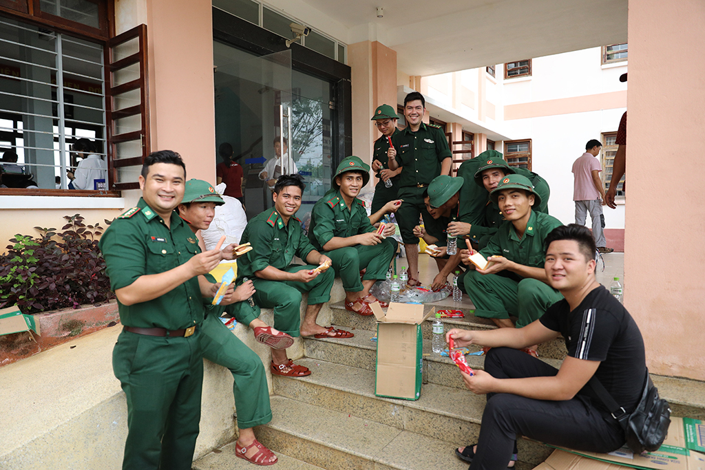 Bữa ăn vội của các chiến sĩ để giúp dân khắc phục hậu quả bão lũ