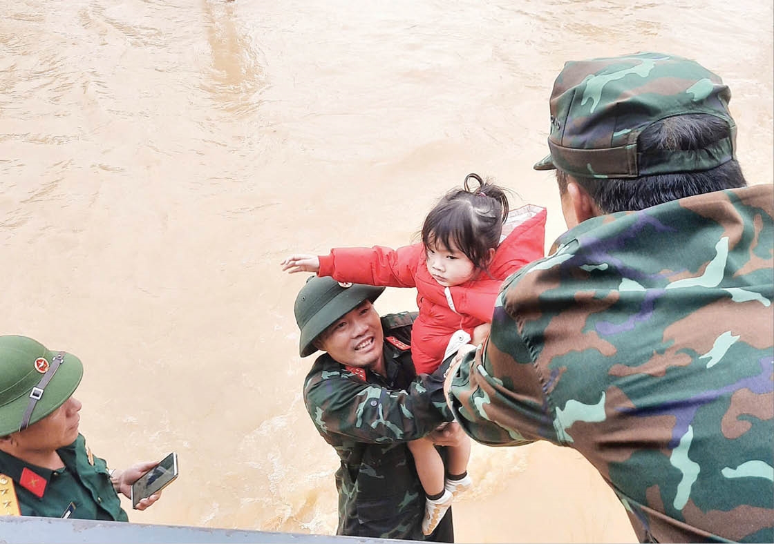 Có quá nhiều sự kiện, câu chuyện và cả hình ảnh dồn nén cảm xúc của người dân Huế trong những ngày mưa lụt vừa qua, đỉnh điểm là trong hai ngày 27 và 28/10. Từ tiếng còi hú cảnh báo mức độ nguy hiểm của thiên tai khiến người nghe ám ảnh như bị gợi nhớ trận sóng thần lịch sử của Nhật Bản năm 2011, đến chuyện ngành đường sắt điều 19 toa tàu chở nặng trĩu đá hỗ trợ “trấn giữ” cầu Bạch Hổ; rồi hình ảnh chiến sĩ cứu hộ mặt trẻ măng bồng gọn như bồng em bé người phụ nữ bằng tuổi mẹ, tuổi bà gồng đi giữa dòng nước xiết; rồi cả tiếng động viên người bệnh nhẹ mà vẫn át cả tiếng mưa, tiếng máy nổ giữa mênh mông nước của anh trưởng công an phường: “Chị cố lên, gần tới bệnh viện rồi. Chị đừng ngủ nhé!”…