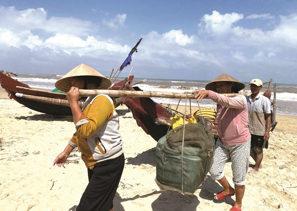 Những người vợ hồ hởi gánh lộc biển lên bờ