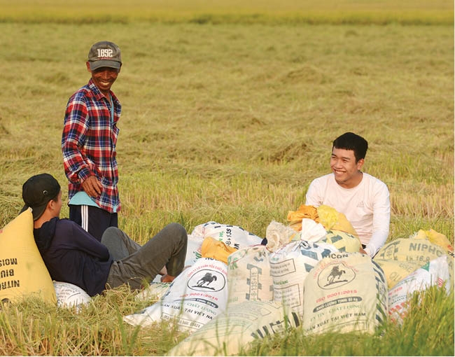 HNN - Ấy là sắc vàng rực rỡ của nắng, của gió, của cánh đồng lúa chín với những hạt thóc căng tròn, chắc mẩy, của rơm rạ và cả những gương mặt cười vui sướng của người nông dân trong ngày thu hoạch. Khung cảnh làng quê rộn ràng, tất bật mà đẹp bình dị đến lạ.