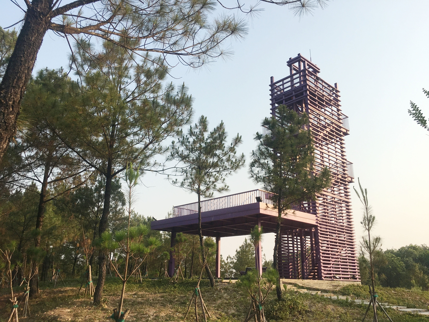 | Chòi canh lửa để phòng cháy rừng nay được đầu tư nâng cấp thành đài ngắm cảnh |