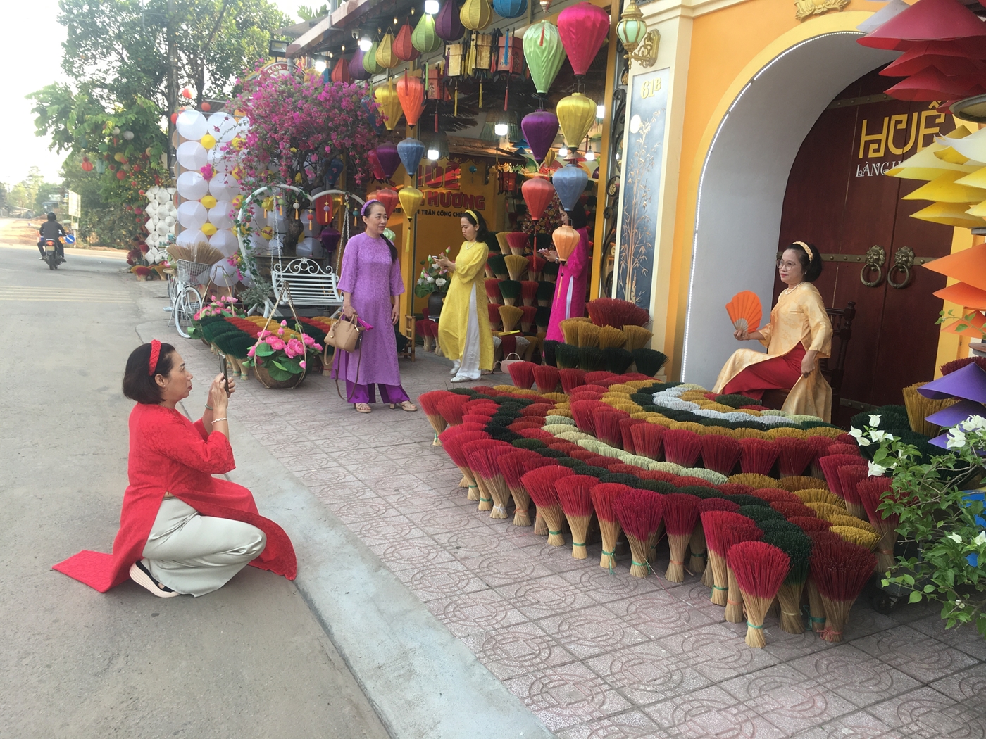 | Những người khách đầu tiên tìm lên làng hương Thủy Xuân bên chân đồi Vọng Cảnh để săn ảnh từ sáng sớm |