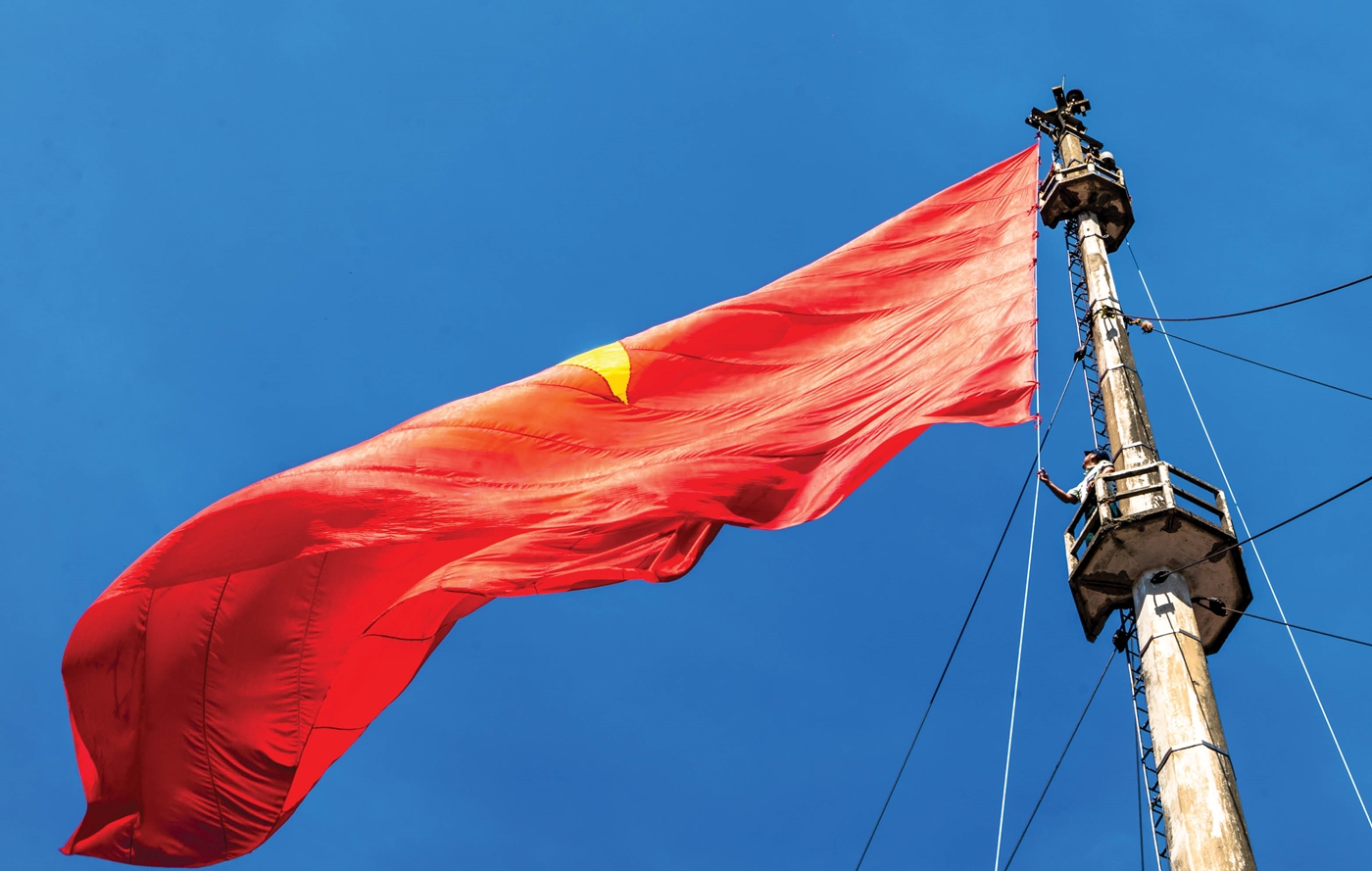 | Kịp thời xử lý khi cờ bị gió làm rách |