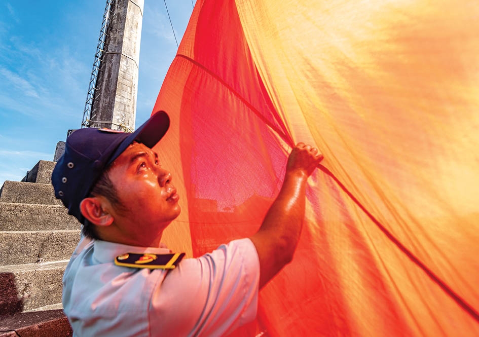 Báo Thừa Thiên Huế kỳ này xin giới thiệu những góc máy của tác giả Bảo Minh, ghi lại công việc chăm sóc, bảo quản, treo và hạ cờ của các nhân viên thuộc Tổ Bảo vệ Kỳ Đài (Trung tâm Bảo tồn Di tích Cố đô Huế). Để lá cờ Tổ quốc có chiều dài 12m, rộng 8m đỏ tươi tung bay trên Kỳ Đài, bất chấp mưa nắng, các anh phải luyện cho bản thân những kỹ năng thật khéo léo, nhuần nhuyễn và biết được hướng gió từng ngày, từng mùa để đỡ sức người. Với các anh, đó là một công việc tuy vất vả, nguy hiểm nhưng rất đỗi tự hào và thiêng liêng.