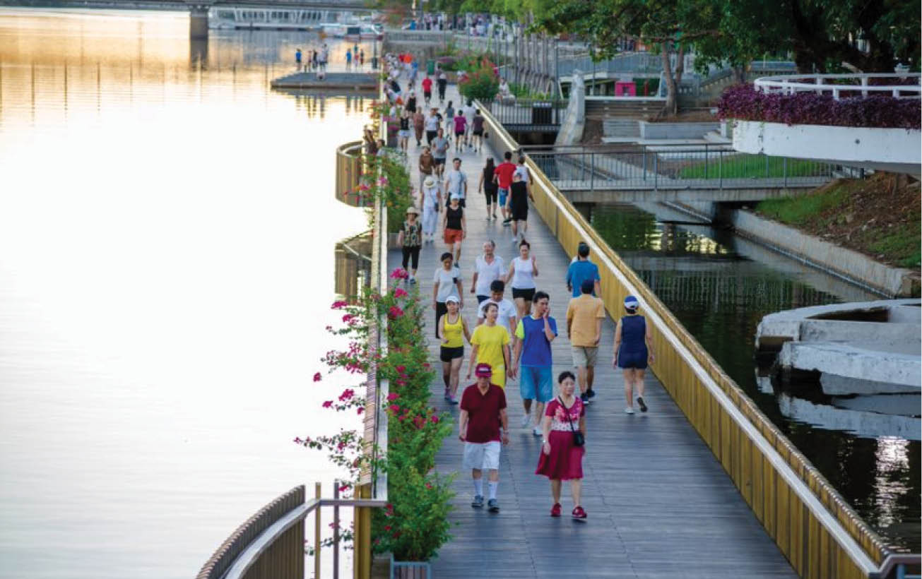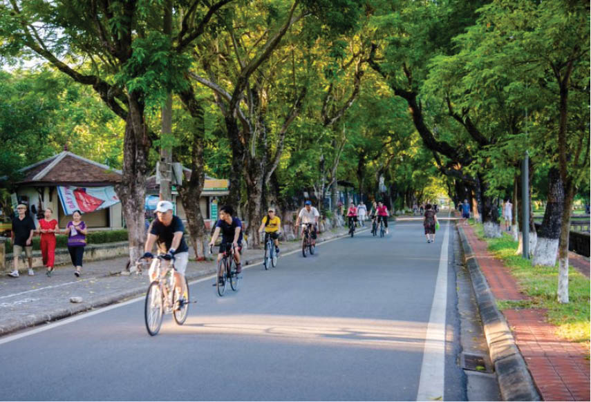 Hướng đến thành phố thân thiện với môi trường, giảm ô nhiễm không khí vì động cơ xe máy, ô tô, gần đây, chính quyền chú trọng đầu tư các tuyến đường đi bộ ven sông, rồi chỉnh trang, phát quang các công viên hai bên bờ sông tạo sự thoáng đãng, sạch sẽ để người dân, du khách có thể tản bộ bất cứ lúc nào. Thế nên, phong trào thể dục, thể thao, đạp xe, đi bộ… bây giờ được người dân Huế quan tâm lắm.