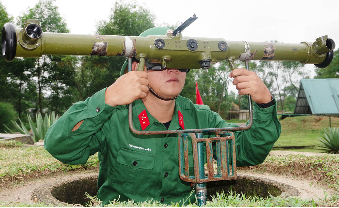 Hạ sỹ Hồ Phan Công Luyện - Trung đội 2 Đại đội Phòng không 594 thực hiện nhiệm vụ trinh sát bay đo cự ly