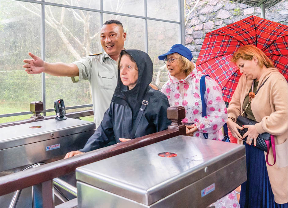 Nhân viên lăng vua Tự Đức đón và hướng dẫn khách vào cổng