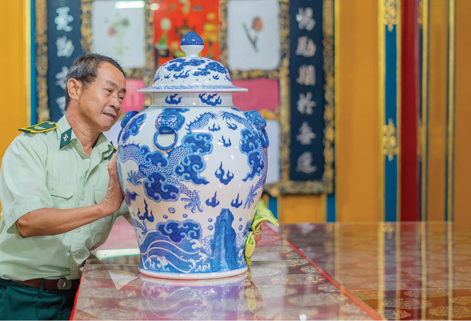 Nhân viên lăng vua Thiệu Trị vệ sinh nội thất, cổ vật trong nội điện 1