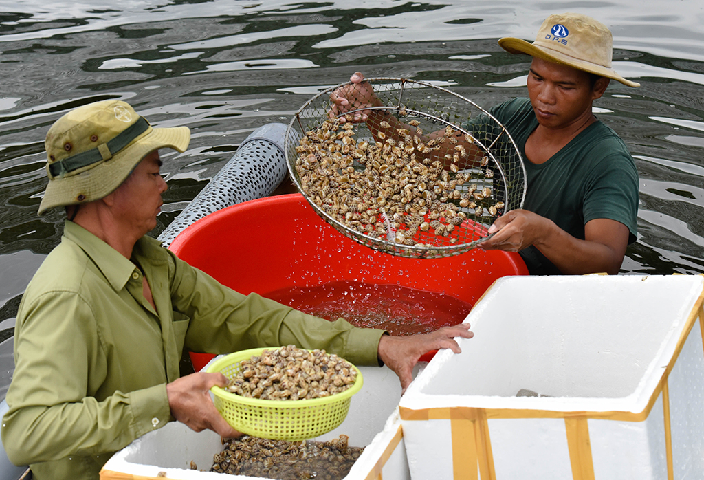 Ốc hương thương phẩm - hướng đi mới với hồ nuôi tôm kém hiệu quả