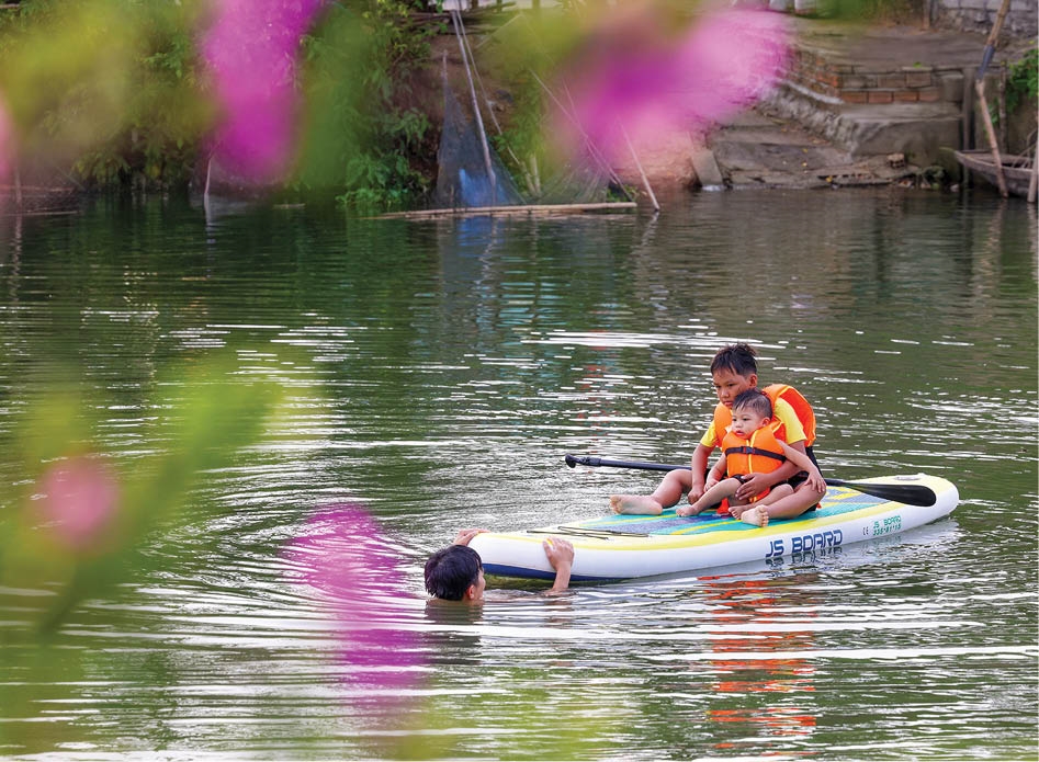 | Người dân tham gia các hoạt động vui chơi, thư giãn bên sông |