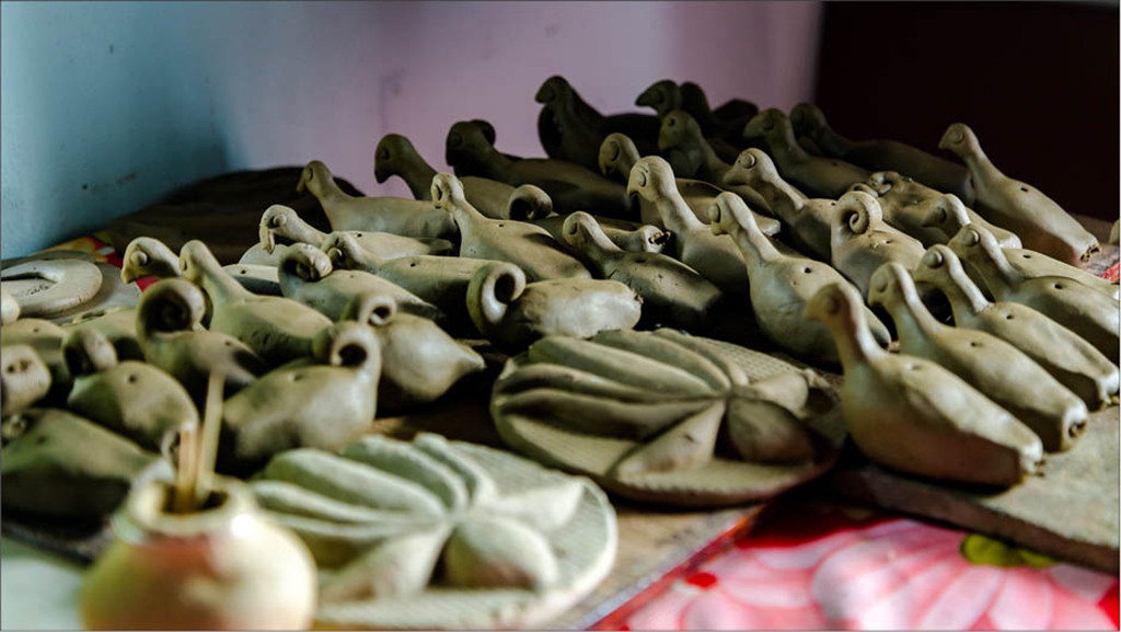 Lò gốm nhỏ trong sân. Ảnh: Anh Quân