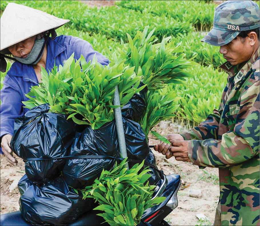 Công việc hàng ngày của những người công nhân trên những vườn ươm xanh. Ảnh: Mạnh Hùng