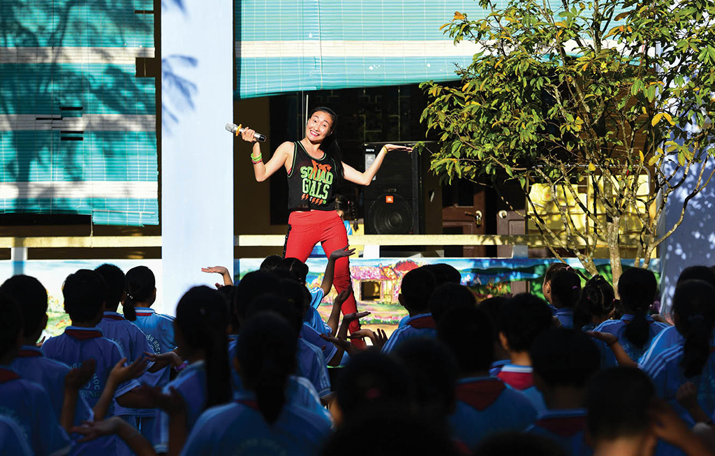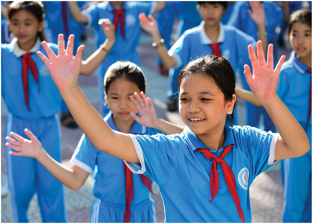 Đó cũng là lí do mà một số trường tiểu học trên địa bàn đưa bộ môn này vào giờ nghỉ giải lao, ra chơi, đầu buổi học… để học sinh tập luyện, vận động, thư giãn. Sân chơi này đã tạo hứng khởi, giúp cô trò gắn kết hơn.