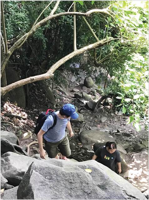 Hơn 300m còn lại để lên đỉnh té ra không đến nỗi quá khó đi. Một phần cũng vì có nhiều đoạn người ra đã đóng sắt vào đá để làm đường lên, dù leo với độ thẳng đứng quả có hơi khiếp. Lên đến đó, nước mang theo đã gần cạn. May thay, dăm múi thanh trà mang theo từ Huế đã thành cứu cánh cho mấy tay phượt vừa nghiệp dư vừa ngẫu hứng. Và chưa bao giờ thanh trà lại ngon ngọt với tôi đến thế.