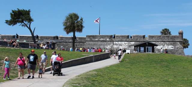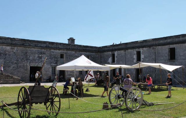 Bước chân lên mặt thành, nhìn về vùng cửa sông, du khách sẽ được chứng kiến những trận đấu súng, những cuộc cướp bóc bất thành của bọn cướp biển đối với các con tàu chở hàng của đế quốc Tây Ban Nha, trong tiếng pháo nổ đì đùng từ những chiến hạm trên sông và những màn rượt đuổi ngoạn mục. Đó là những hoạt cảnh được tái hiện để phục vụ du khách. Ngoài ra, định kỳ hàng tuần, tại pháo đài Castillo de San Marcos còn diễn ra những màn bắn đại bác, do các “pháo thủ” vận trang phục của người Anh khi họ nắm quyền quản lý nơi này vào cuối thế kỷ XVIII.