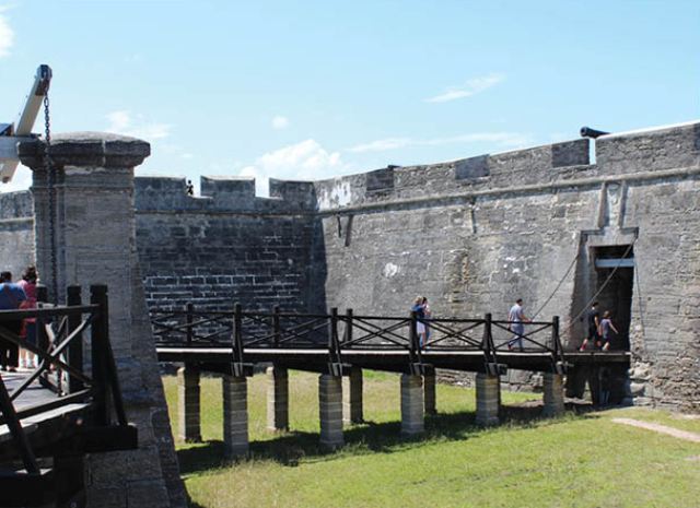 Cầu treo bắc qua hào sâu, dẫn vào pháo đài Castillo de San Marcos