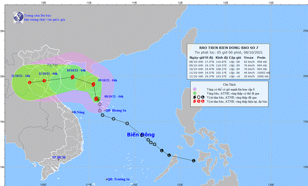 Theo Trung tâm Dự báo Khí tượng Thủy văn Quốc gia, sáng 8/10, áp thấp nhiệt đới đã mạnh lên thành bão - cơn bão số 7.