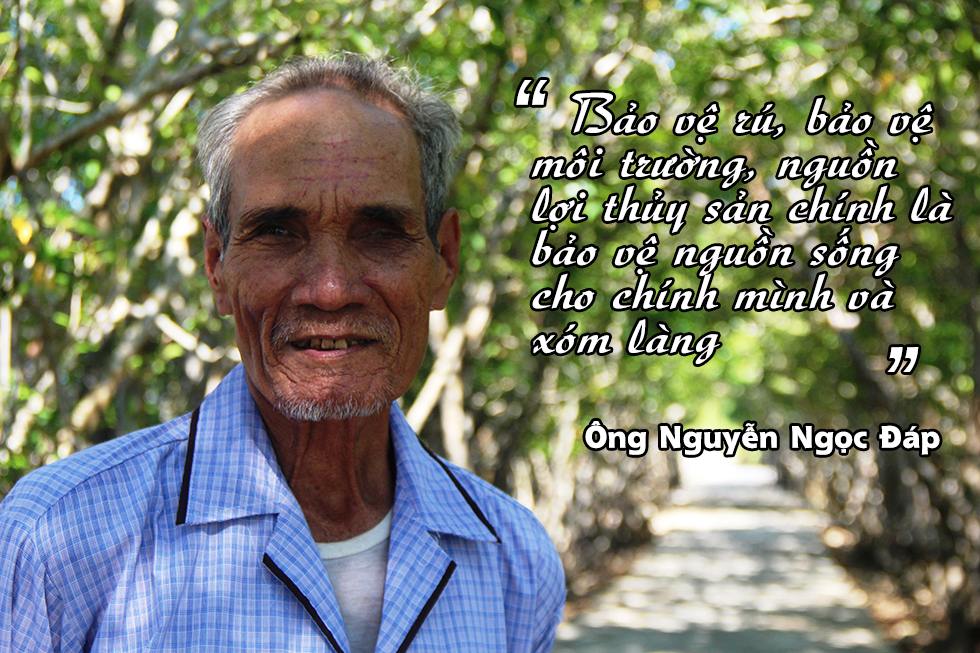 Ngày đầu giữ rú, ông Đáp tự nguyện tham gia làm “kiểm lâm”. Ban đầu, mỗi năm, ông được “trả công” 5 thúng lúa. “Bảo vệ rú, bảo vệ môi trường, nguồn lợi thủy sản chính là bảo vệ nguồn sống cho chính mình và xóm làng”. Nghĩ vậy, sau này ông Đáp tình nguyện giữ rú, không nhận lúa trả công của xã.